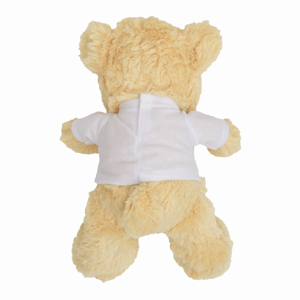 Pluche beer ALEXANDER in zittende houding met wit T-shirt (los bijgeleverd) voor bedrukken.