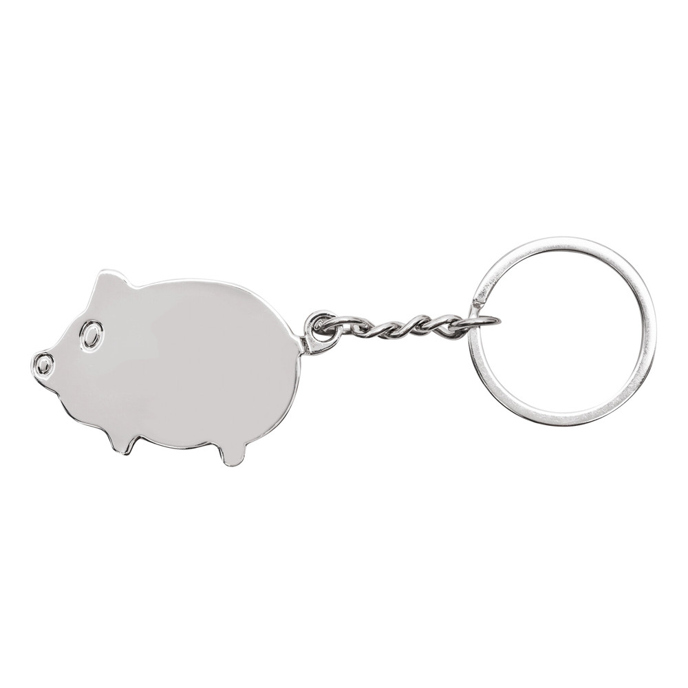 Speelse metalen sleutelhanger CHAMBA in de vorm van een spaarvarken met winkelwagenmuntje.