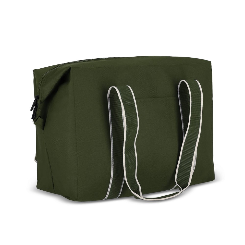Dankzij de stevige ritsluiting open je het hoofdvak eenvoudig en houd je alles goed afgesloten, zodat de koelte optimaal behouden blijft. Het voorvak, hoewel niet geïsoleerd, is perfect om een logo of bedrijfsnaam op te drukken. Dit maakt de tas een uitstekende keuze voor bedrijven die op zoek zijn naar een stijlvolle en duurzame promotieoplossing. Door het slimme ontwerp maak je de tas gemakkelijk groter door de zijkanten los te maken. Deze handige functie, gecombineerd met stevige hengsels, maakt van de Koli niet alleen een koeltas, maar ook een praktische boodschappentas.