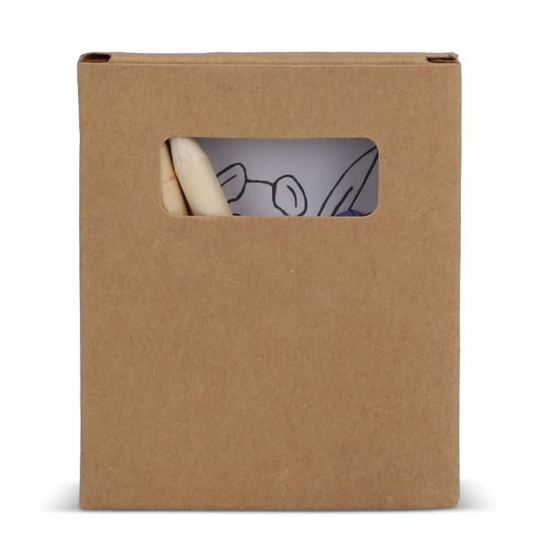 Een complete creativiteitsset voor onderweg, met 6 kleurpotloden, een puntenslijper en een kleurboek, allemaal netjes verpakt in een kraft doosje. Perfect voor op reis, biedt urenlang vermaak in een compacte, duurzame verpakking. Combineer het met eco digital print voor een milieubewuste optie.