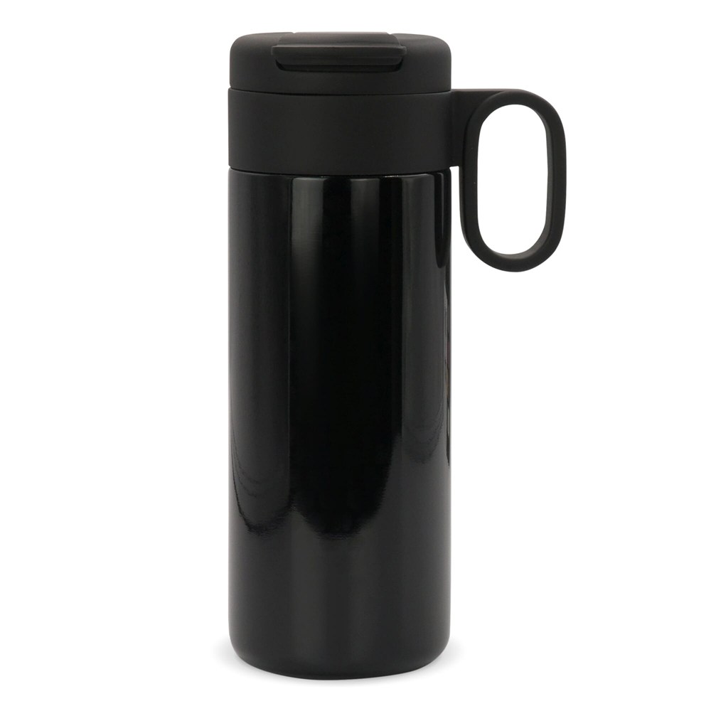 Dubbelwandig vacuüm geïsoleerde beker uit de Toppoint design 'Flow' serie. De mok met klapdeksel is 100% lekvrij en eenvoudig mee te nemen. Zowel de binnenwand als de buitenwand van de mok bestaan uit RVS en is van zeer hoogwaardige kwaliteit. Daardoor blijft het drinken langer op de gewenste temperatuur. Het handvat maakt het eenvoudiger om te dragen. Dranken blijven tenminste 12 uur warm of 24 uur koud. Wordt geleverd in een geschenkverpakking.