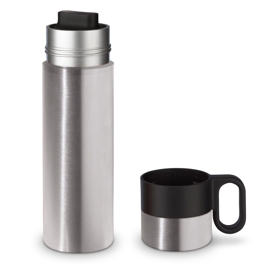 Dubbelwandig vacuüm geïsoleerde thermobeker uit de 'Flow' serie. De beker met design draaidop is 100% lekvrij en eenvoudig mee te nemen. Zowel de binnenwand als de buitenwand van de beker bestaan uit RVS en is van zeer hoogwaardige kwaliteit. Daardoor blijft het drinken langer op de gewenste temperatuur. Dranken blijven tenminste 12 uur warm of 24 uur koud.