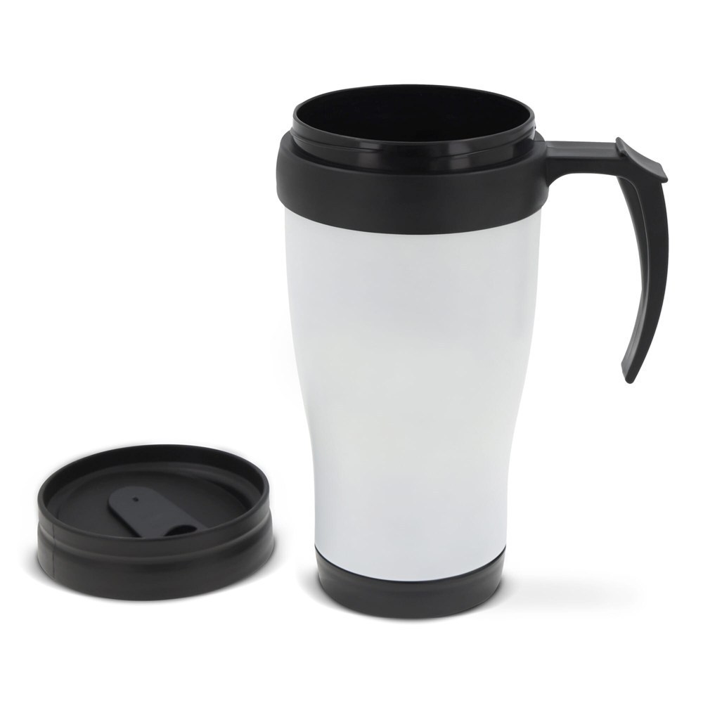 Koffiebeker geschikt voor warme dranken. Metaal van buiten en kunststof van binnen. Wordt in...meer