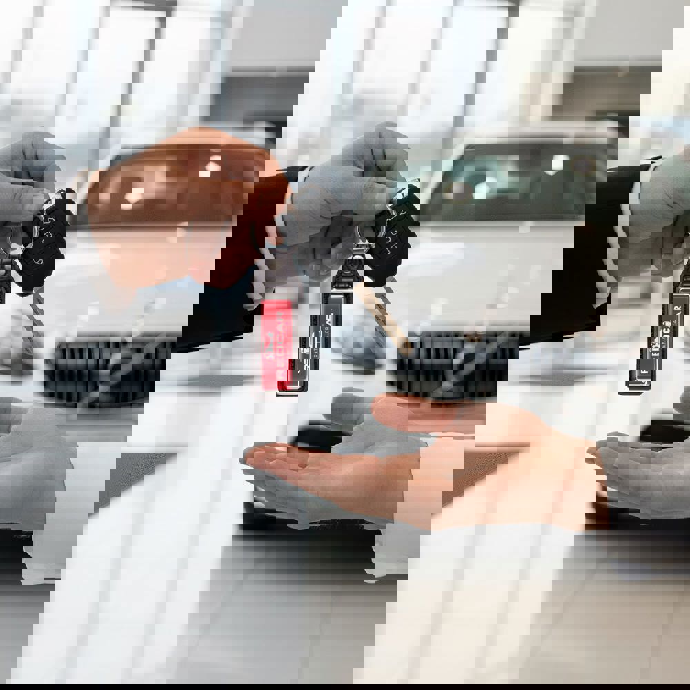 Metalen rechthoekige sleutelhanger met ring. Met enkelzijdige doming.