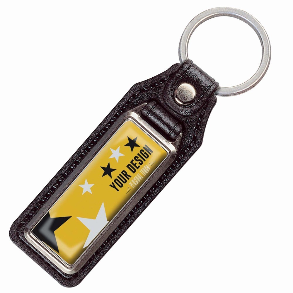 Metalen rechthoekige sleutelhanger met ring. Met enkelzijdige doming.meer