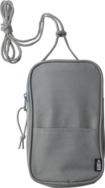 Polyester rPET (600D) kruisschoudertas met verstelbaar polskoord. Eén groot compartiment met ritssluiting met elastische band en insteekvak. De ritssluiting is voorzien van een elastische band. Met rPET-label.