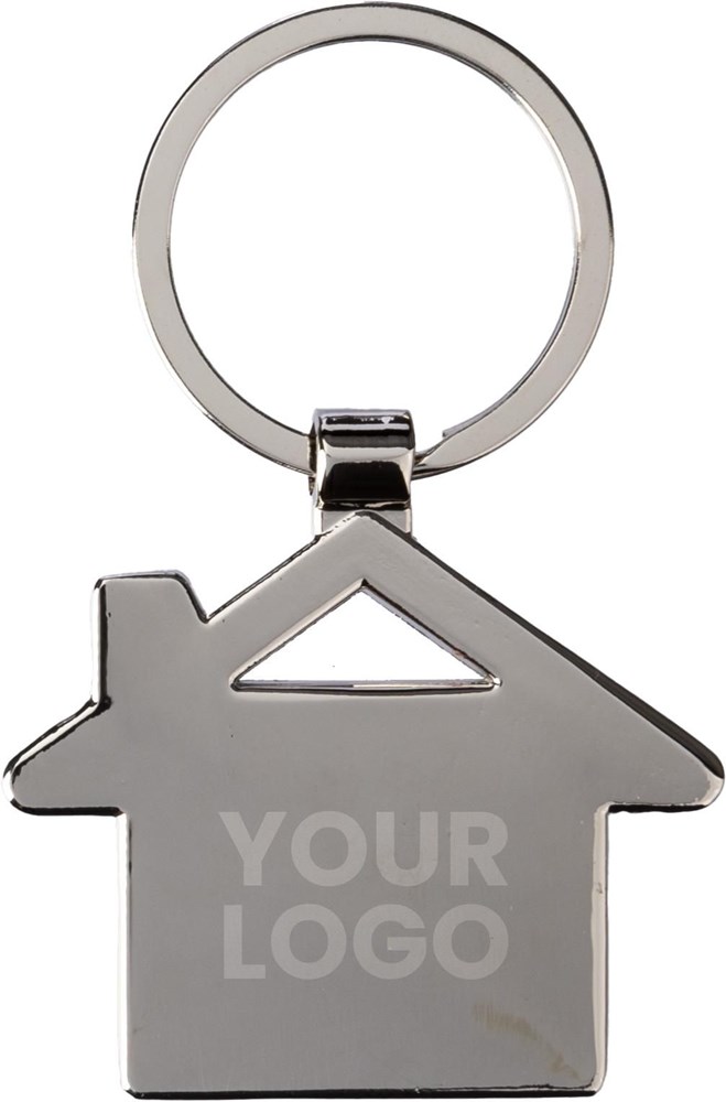 Zinklegering sleutelhanger met bamboe huis-detail en metalen ring. Gat aan de bovenkant....meer