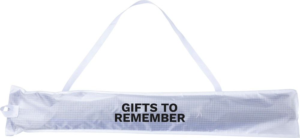 Polyester (210T) ripstop deltavlieger met een spanwijdte van 160 cm en twee plastic handgrepen. Per stuk verpakt in een hoes met een verstelbare draagriem.