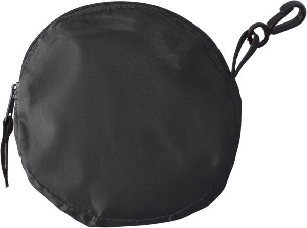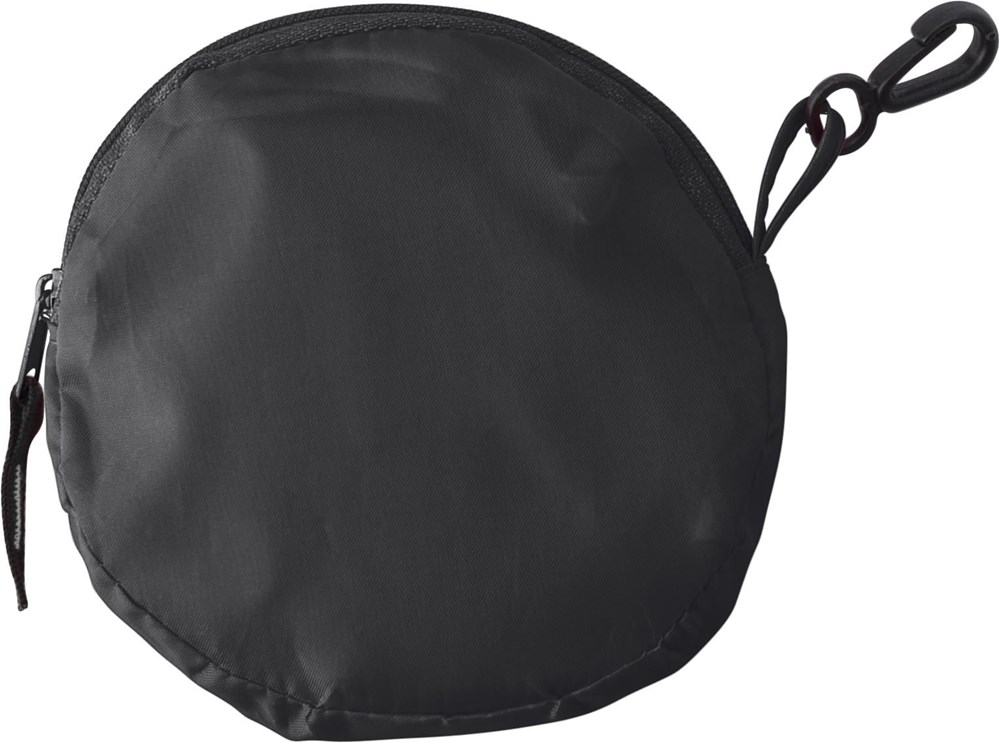 Opvouwbare polyester draag-/boodschappentas (190T), verpakt in een hoesje met een kunststof karabijnhaakje en ritssluiting. Uitgevouwen: 40 x 28 cm.
