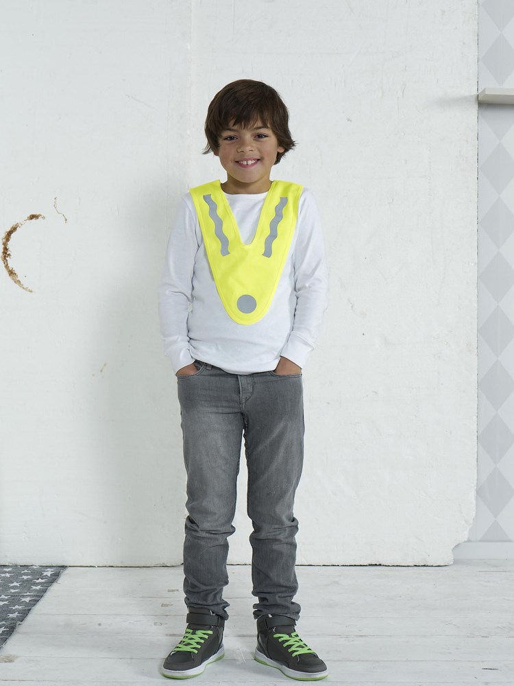 100% Polyester veiligheidsvest voor kinderen, met V hals. Geschikt voor promotioneel gebruik.