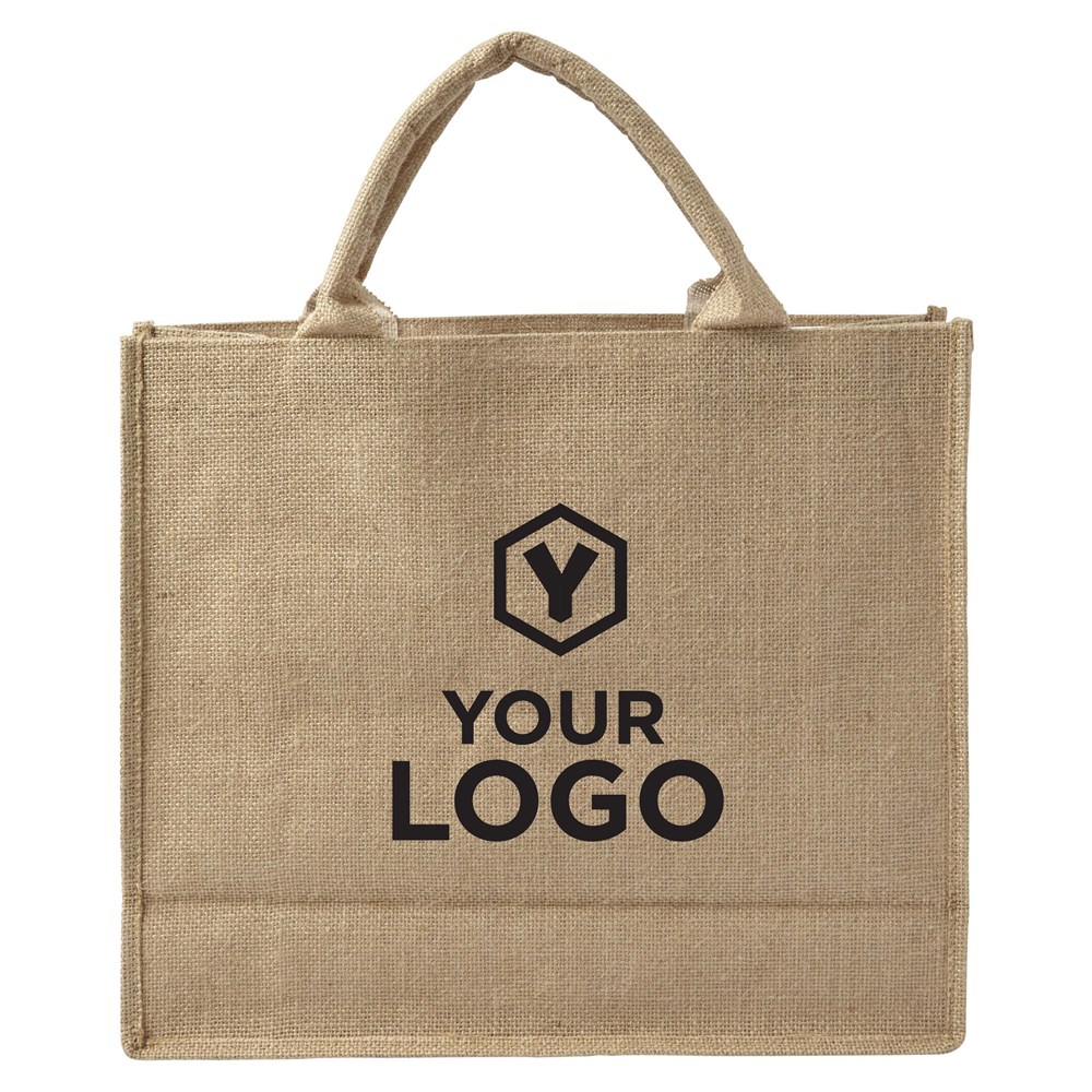 Juten draag-/boodschappentas met korte hengsels en gelamineerde binnenzijde.