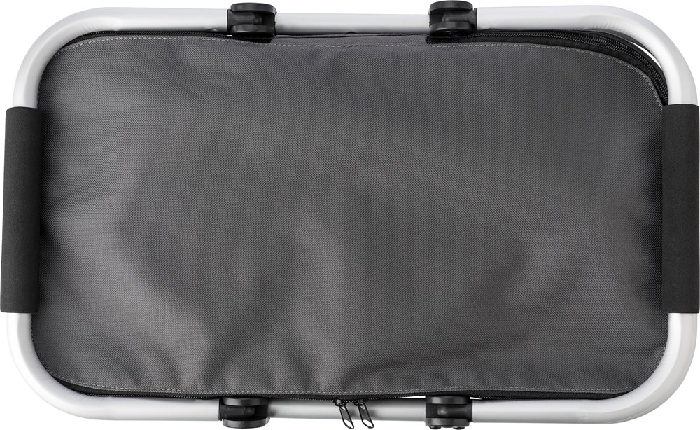Polyester (320-330gr) boodschappenmand (Oxford), met een aluminium frame en handvaten van EVA schuim, met ritssluiting aan de bovenzijde.