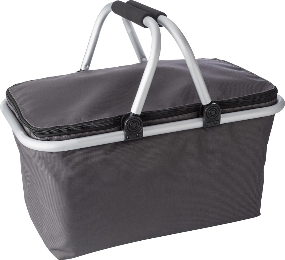 Polyester (320-330) opvouwbare boodschappenmand (Oxford) met koelvak, een aluminium frame en handvaten van EVA schuim, kan gesloten worden met een rits aan de bovenzijde.