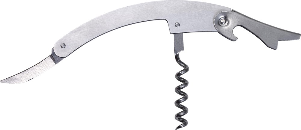 Roestvrijstalen kelnermes, inclusief flessenopener, kurkentrekker en foliesnijder.meer