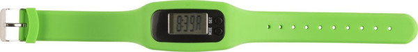 Stappenteller met siliconen armband. Telt stappen (tot 99.999), calorieën en afgelegde mijlen/kilometers. Inclusief batterijen. 1.5 Volt.