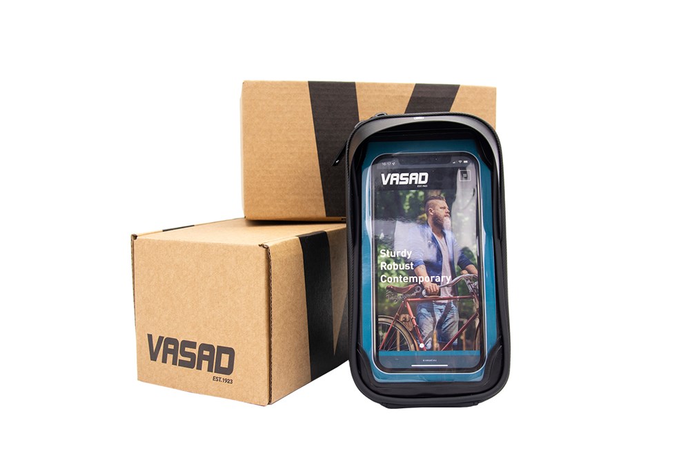 Navigeer makkelijk en veilig de mooiste routes op je telefoon met de VASAD Phone Bag. Simpel op je stuur te bevestigen met klittenband. De waterdichte rits en materiaal beschermen je telefoon en spullen als sleutels, pasjes of powerbank die je nog in het tasje op kunt bergen. De reflecterende VASAD-print aan de voorzijde vergroot je zichtbaarheid. Verpakt in luxe geschenkdoos en met QR-code om je op weg te helpen met de leukste fietsroutes in Europa!