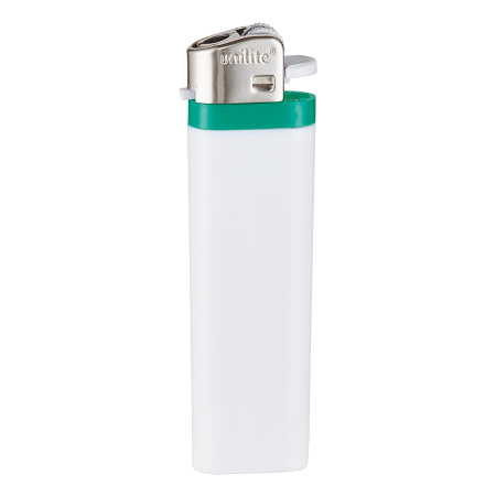 Witte wegwerpaansteker met gekleurde band.