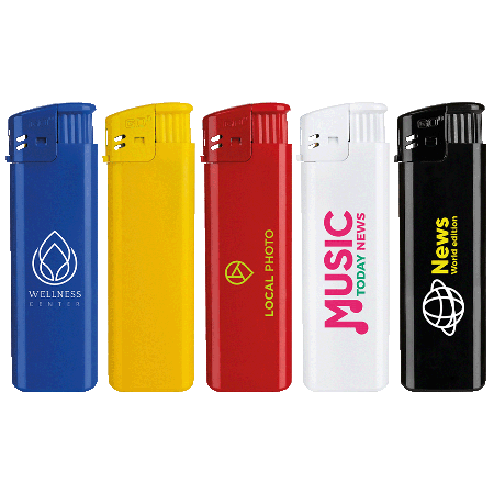 Elektronische aansteker hard colour, navulbaar, 25x82x10 mm., met gas stop, shock proof bodem, kinderbeveiliging en ISO gecertificeerd