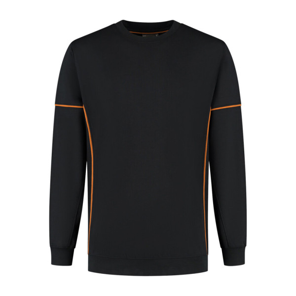 Sweater met contrast piping, 50% gerecycled polyester / 48% organisch katoen / 2% elastan (GRS gecertificeerd), 320 gr/m², french terry met geruwde binnenzijde, unisex, regular fit, ronde hals met 1x1 ribboord, mouw met contrast piping, tailleband en mouw met 1x1 ribboord, 3D logo transfer op onderzijde.