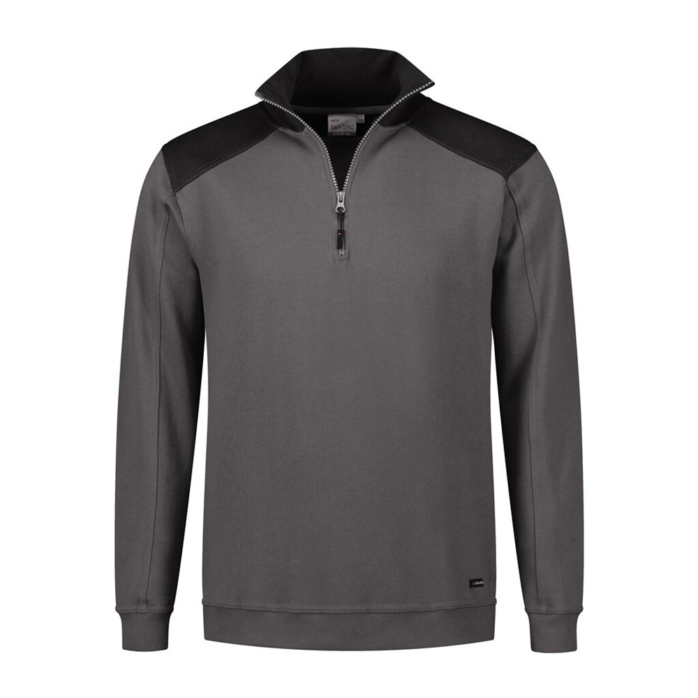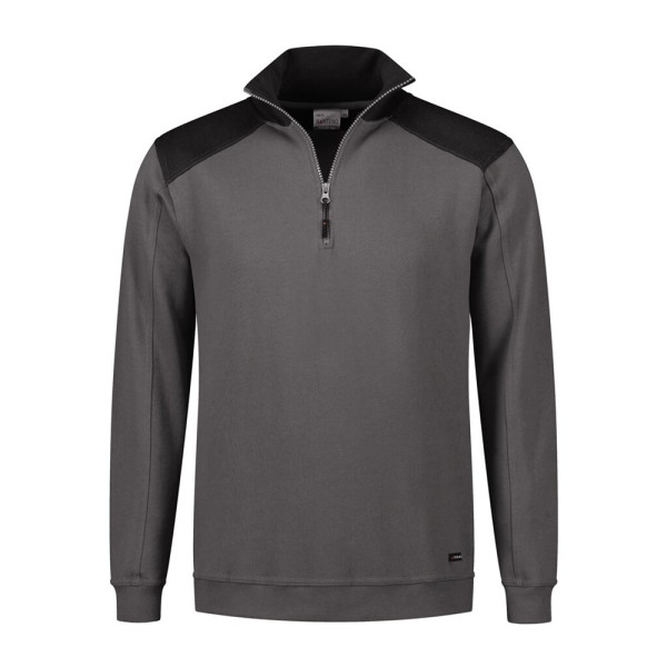 Zipsweater, 50% katoen / 50% polyester, 280 gr/m², french terry met geruwde binnenzijde, regular fit met opstaande kraag met korte YKK rits, mouw met ribmanchet tailleband in 1x1 rib, kraag en schouderstuk in contrast kleur.