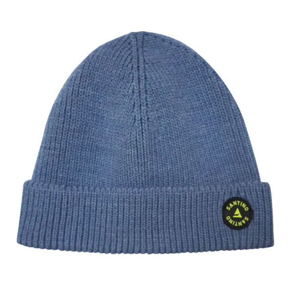 Beanie, 100% gerecycled acryl en gebreid. Voorzien van Silicone Santino-badge.