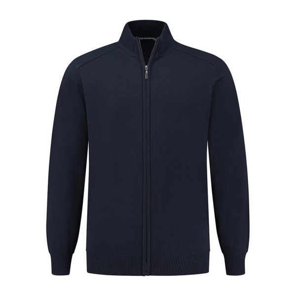 Zip cardigan, 50% katoen / 50% acrylic, 12 gauge breisel, +/- 460 gr/st, modern fit met opstaande kraag en verdekte metalen YKK rits. Raglanmouw inzet, mouwen met ribmanchet en tailleband in 2x2 rib.