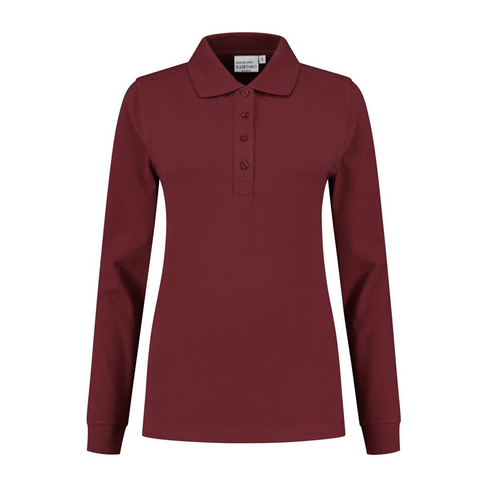 Poloshirt met lange mouw, 50% polyester / 50% lange vezel katoen, 220 gr/m², pique, ladies fit met polo-ribkraag, en 4-knoopsluiting, lange mouw met ribmanchet, 1x1 ribboord, splitjes in zijnaad, schouders voorzien van een dubbele laag stof voor extra versteviging, halve maan en anti-microbiële afwerking. (Sport grey is melange: 85% gekamd katoen / 15% viscose).