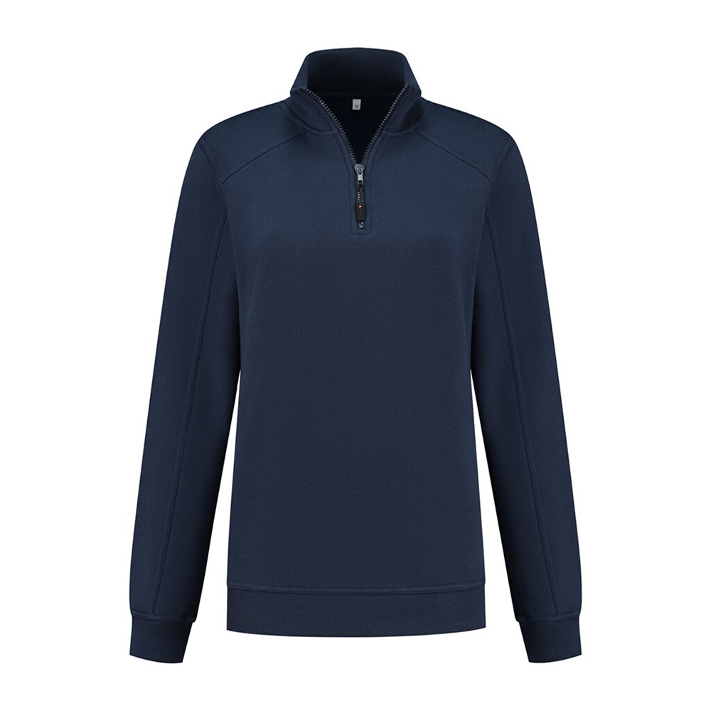 Zipsweater, 50% katoen / 50% polyester, 320 gr/m², french terry met geruwde binnenzijde, ladies modern fit met opstaande ribkraag met korte YKK Vislon rits, mouw met ribmanchet, tailleband in 1x1 rib.