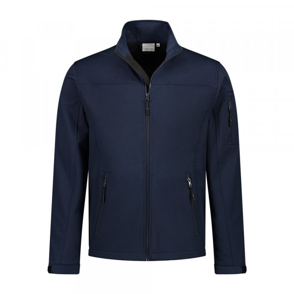 Softshell jacket, 94% polyester / 6% elastaan, 310 gr/m², 3 laags softshell, modern fit met opstaande kraag, mouw met klitteband verstelbare manchetten, 2 steekzakken en mouwzak met YKK rits, winddicht, ademend, waterafstotend. (Alleen druktechnieken gebruiken die geschikt zijn voor stoffen als softshell.)
