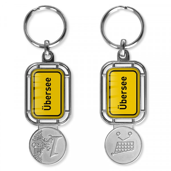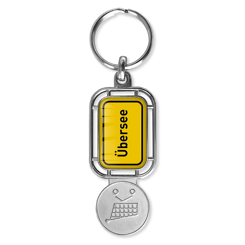 Leuke rechthoekige metalen sleutelhanger in de vorm van een straatnaambord. Aan het uiteinde heeft de hanger de vorm van een winkelwagenmunt, waardoor je het handig kunt gebruiken om een winkelwagen te ontgrendelen. Beide zijden kunnen een dominglabel bevatten, ook enkelzijdig is mogelijk. Deze label(s) hebben een drukformaat 29 x 19 mm.