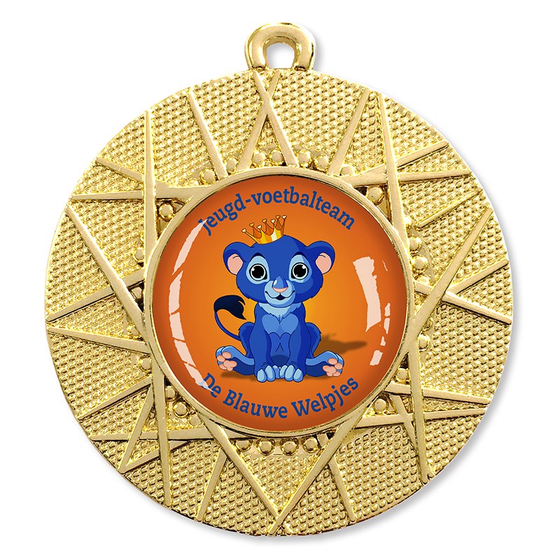 Medaille van Ø 50 mm met een mooie dominglabel aan de voorzijde van Ø 25 mm. Deze medaille wordt geleverd met halslint en is verkrijgbaar in goud, zilver en brons. Het motief op de medaille zijn diverse lijnen in elkaar overlopend en geeft het geheel een moderne en dynamische uitstraling. Een mooie medaille voor een strakke prijs.