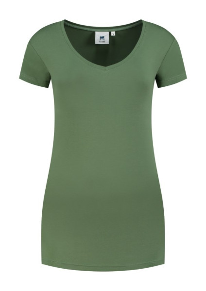 Lemon & Soda dames V-hals T-shirt met korte mouwen in meerdere kleuren. Een comfortabel T-shirt dankzij de langere lengte en het aansluitende model van de single jersey. De kleuren zijn ideaal om te bedrukken en te borduren en perfect in te zetten als werkkleding.