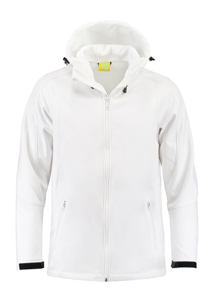 Lemon & Soda softshell unisex jack met capuchon en twee zakken met rits van een hoogwaardige kwaliteit. Softshell is te borduren en hierdoor is het jack in te zetten als gepersonaliseerde promotiekleding of bedrijfskleding.