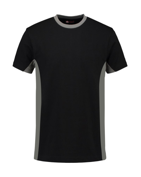 Lemon & Soda workwear unisex T-shirt met korte mouwen en ronde hals. Contrast kleuren bij de halsopening enzijkanten van het T-shirt. Behandeld met een bio-wassing voor extra glad oppervlakte.
