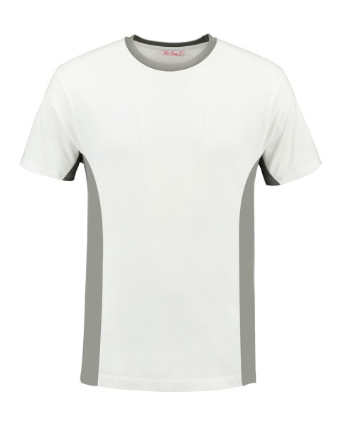 Lemon & Soda workwear unisex T-shirt met korte mouwen en ronde hals. Contrast kleuren bij de halsopening enzijkanten van het T-shirt. Behandeld met een bio-wassing voor extra glad oppervlakte.