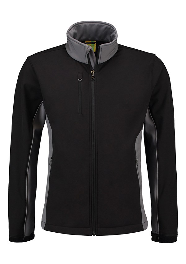 Lemon & Soda workwear softshell jacket. Comfortabele jas, gemaakt van een zware kwaliteit softshell. De jas is winddicht, waterafstotend en ademend. Daarnaast heeft het zijzakken met rits, reflecterende piping en een YKK-ritssluiting.