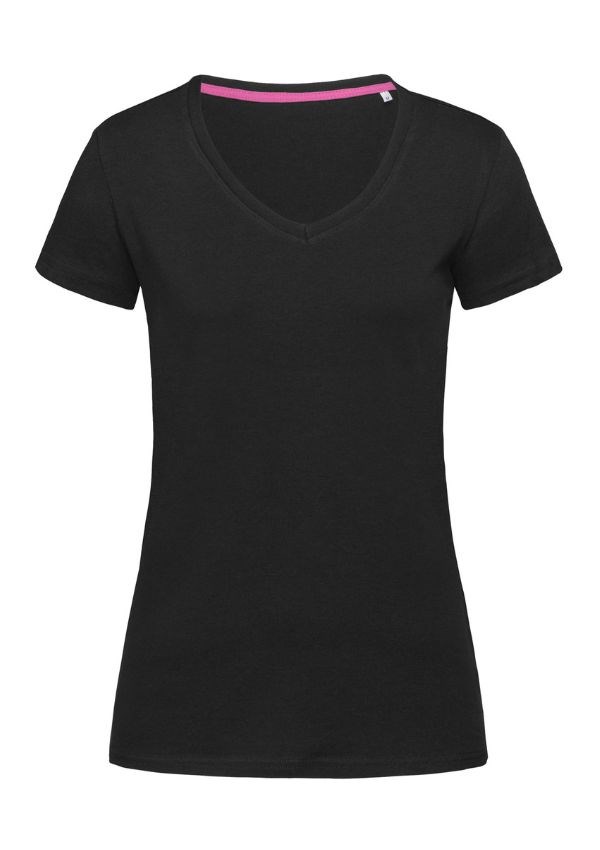 Stedman Stretch-T V-neck T-shirt met korte mouwen voor dames. Comfortabel door de elastaan en gekamde katoen kwaliteit. Het T-shirt heeft een wijdere hals, nekband, een klein maat label in de nek en zijnaden