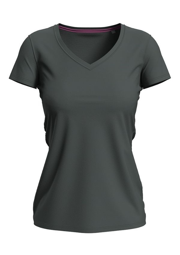 Stedman Stretch-T V-neck T-shirt met korte mouwen voor dames. Comfortabel door de elastaan en gekamde katoen kwaliteit. Het T-shirt heeft een wijdere hals, nekband, een klein maat label in de nek en zijnaden
