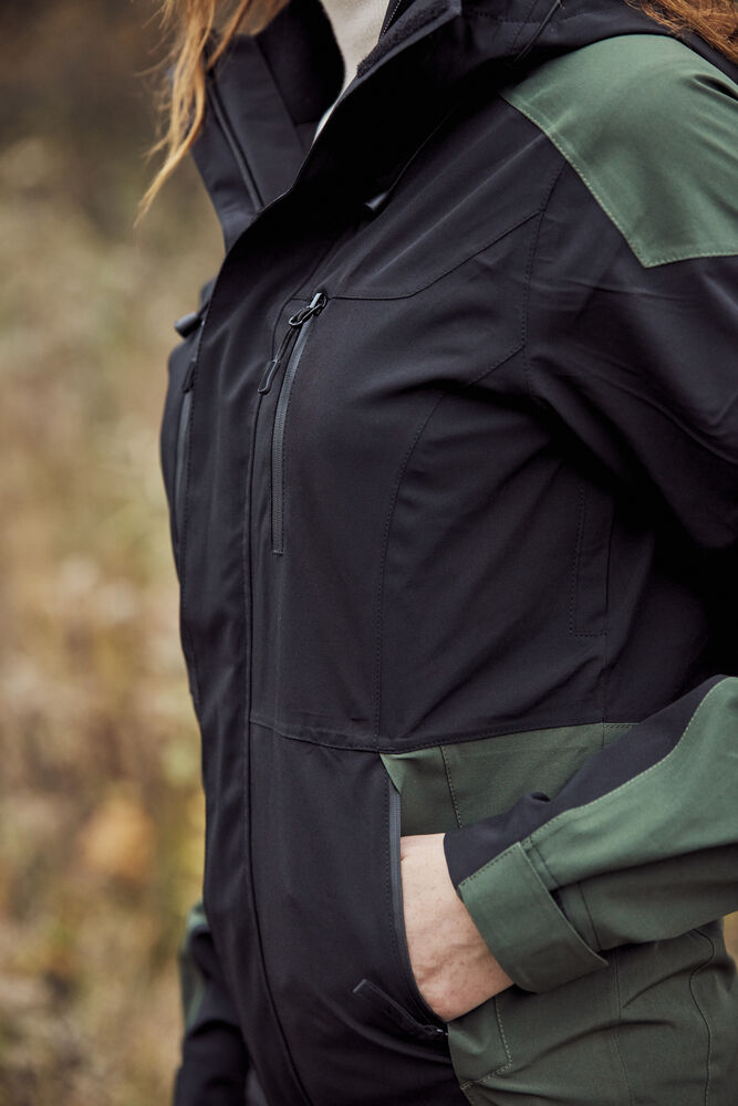 | Materiaal: | 92% polyester, 8% elastaan met TPU-coating. Voering: mesh. WP 5000mm. MVP 3000g/m2-24h. |