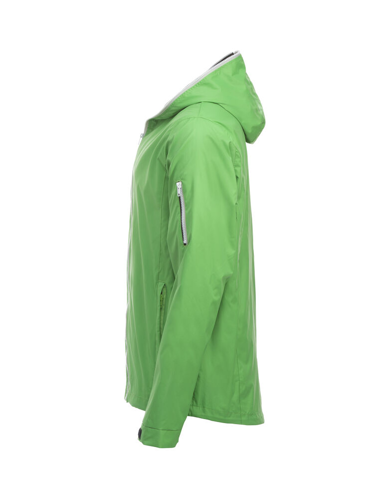 Opvallende, lichtgewicht jas met rits die tot en met de capuchon dicht kan. De jas is uitgerust met opvallende contrasterende strepen die langs de rits lopen voor een unieke, opvallende uitstraling. De jas is gemaakt van hoogwaardig ripstop polyester met PU coating ter bescherming bij regenachtig weer. De jas is gemakkelijk te veredelen dankzij de drukkersrits aan de binnenzijde.
