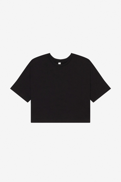 100% gekamd en ringgesponnen katoen. Dit cropped T-shirt in jersey in streetwearstijl is ideaal voor de zomer. Heel zacht en licht. Oversized mouwen. Ruime snit. De rug is iets langer. Dubbel stiksel aan hals, mouwuiteinden en onderkant.