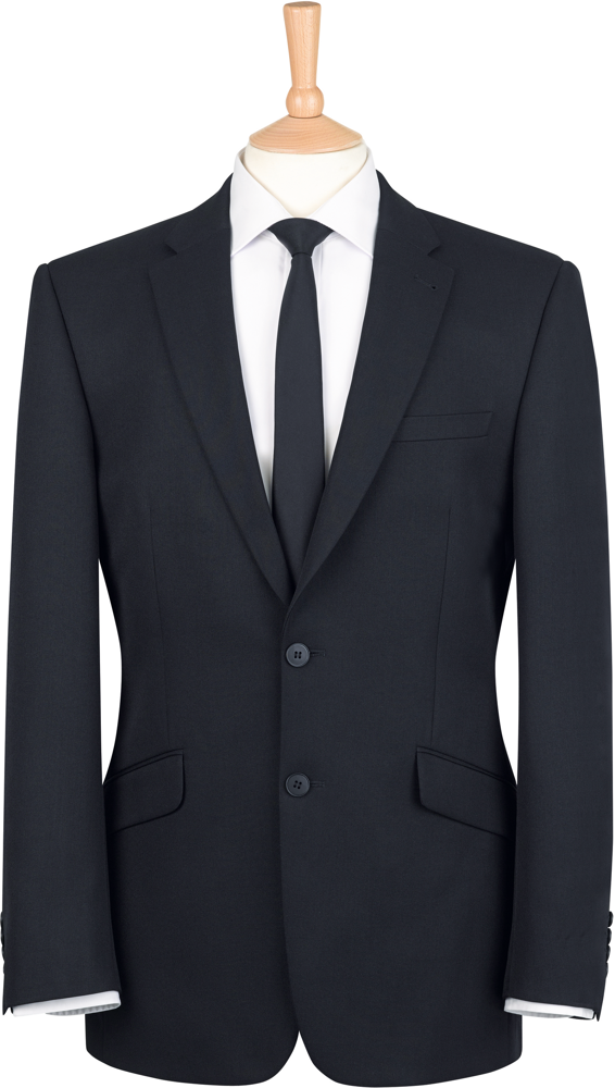 Herenblazer met 2 knopen. Getailleerde snit. 2 splitten aan de achterkant. 3 binnenzakken.