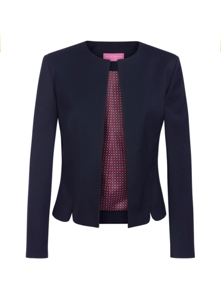 64% polyester / 34% viscose / 2% elasthan. LYCRA® elasthan. Getailleerde pasvorm, kraagloze styling met gebogen splitten, 2 interne jettzakken, gebogen voor- en achternaden. Hoge mate van vlekbestendigheid Teflon®. Martindale-slijtproef: bestand tegen 10.000 wrijvingen. Wasbaar in de machine op 40 °C of droogkuis.