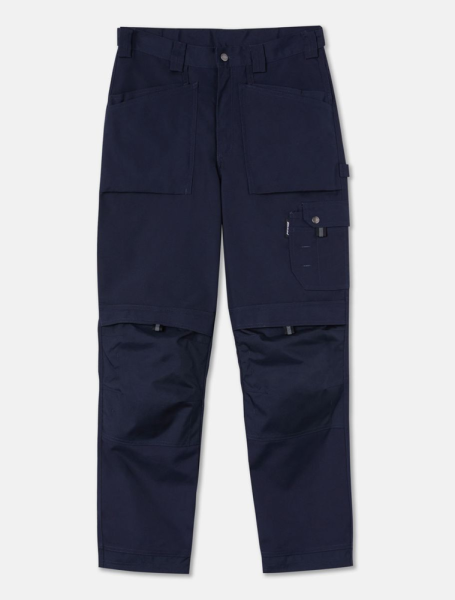 65% polyester / 35% katoen. Canvaskatoen. Verschillende zakken. Knieversteviging. Holsterzakken. Zak voor een meter. Gsm-zak. Lus voor een hamer.