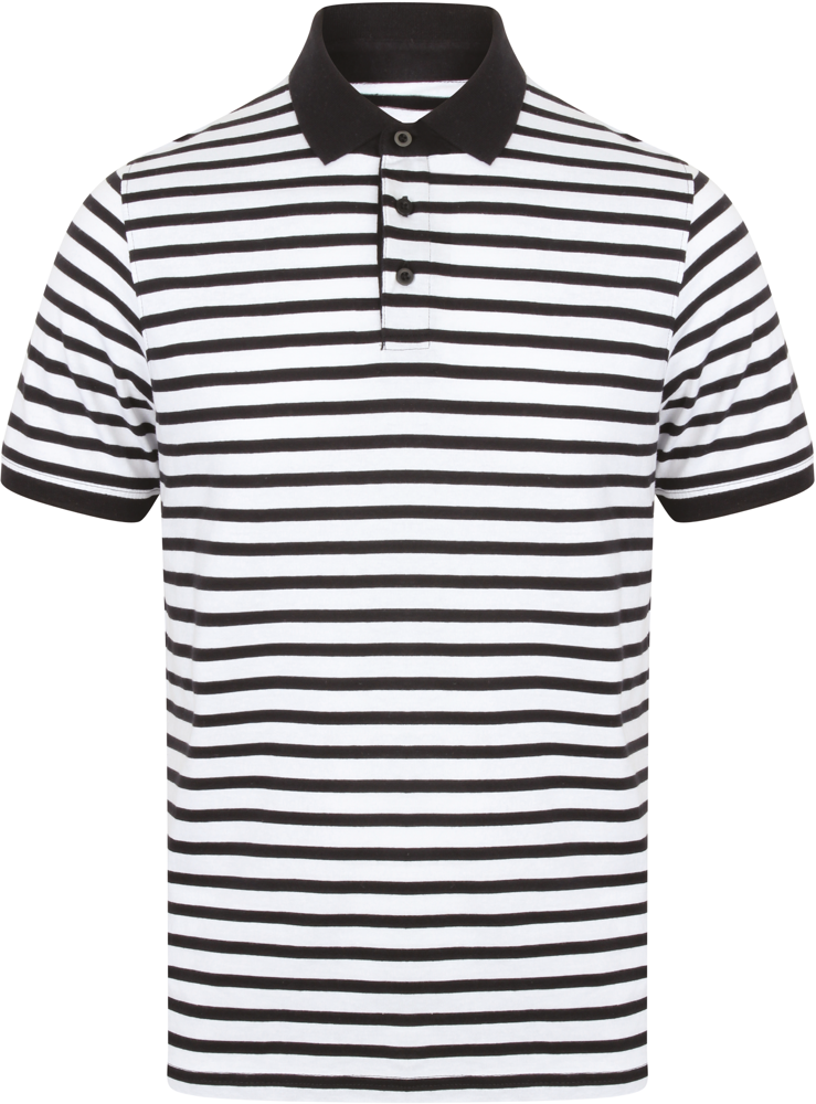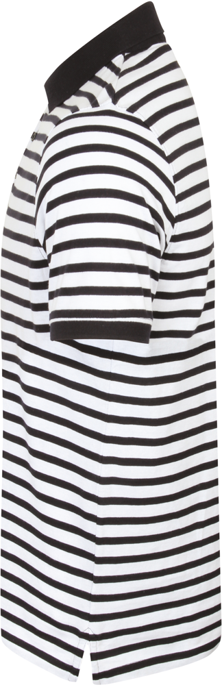 100% jerseykatoen. Kraag en mouwuiteinden in ribboord met elasthan. Kraag en knooplijst in jersey. Knooplijst met 3 knopen in Navy. Zijsplitten met visgraatmotief. Afwerking met dubbel stiksel onderaan. Zonder etiket voor eenvoudige personalisatie.