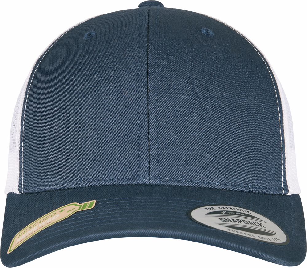 Buitenstof 1: 100% katoen. Buitenstof 2: 100% gerecycled polyester. Tweekleurige truckerspet. De voorkant en de zonneklep van de pet zijn gemaakt van ondoorzichtig katoen. De achterkant is gemaakt van ademende mesh van gerecycled polyester. Eén maat. Verstelbaar met een drukknoopsluiting in een bijpassende kleur.
