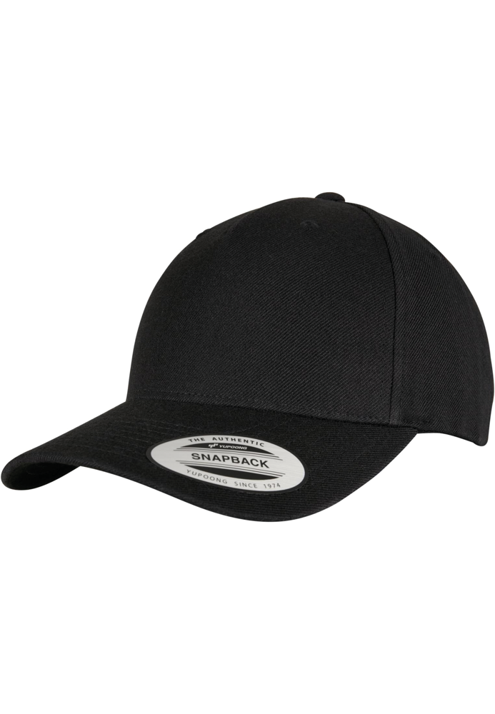 80% acryl, 20% wol. Pet met 5 panelen, een gebogen zonneklep en een snapbacksluiting. Naadloos frontpaneel voor een eenvoudige personalisatie.