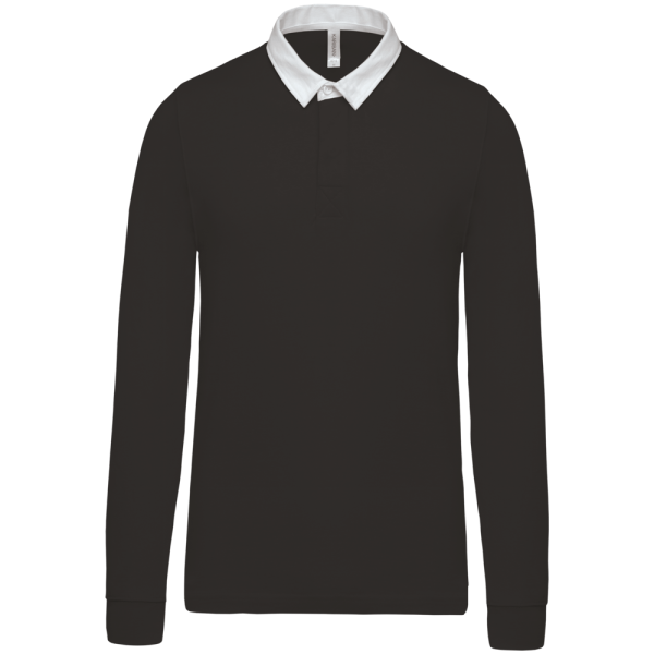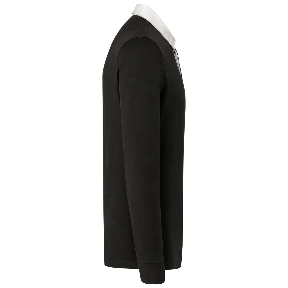 100% Gekamd katoen. Voorgekrompen gekamd jerseykatoen. Kraag in contrasterend wit twillkatoen (behalve de kleuren Red en Dark Grey, die een zwarte kraag hebben). Lijst met 3 knopen. Mouwuiteinden in 1x1 ribboord. Afwerking met visgraatmotief op de binnenzijde van de kraag en aan de zijsplitten.