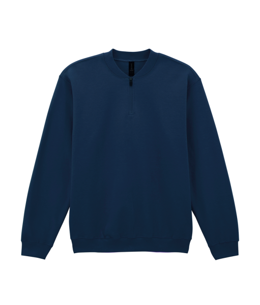 80% Ringgesponnen katoen, 20% Polyester. 1x1 ribboord met elastaan, Varsity kraag, manchetten en onderband voor verbeterde stretch en herstel. Omgekeerde ritssluiting in bijpassende kleur.