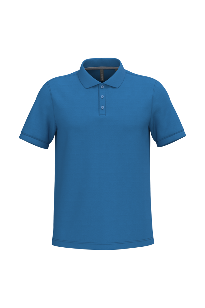 100% gekamd katoen - wasbaar op 60°C (Oxford Grey : 90% katoen / 10% viscose - wasbaar op 40°C). Piqué. Kraag in rib. Nektape en zijsplitjes in Oxford Grey voor alle kleuren behalve Oxford Grey daarvan zijn ze Dark Grey. Knooplijst met 3 knopen. Afwerking met dubbele stiksels aan de onderkant. Mouwuiteinden in rib.